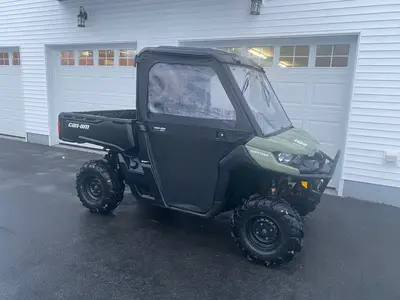 Very good condition! Financing available! Power steering, full cab enclosure including heat, roof, front windshield, rear window, Can Am vinyl doors, front bumper, wench, dump box. Good rubber.