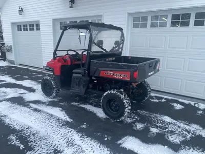 Very good condition! Financing available! Roof, full front windshield with wipers, rear view mirror, rear window, wench, dump box, 3 person bench seat. Good rubber