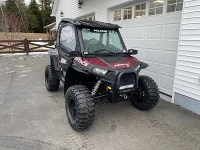 Financing available, Power Steering, 4,684 miles, Full cab enclosure including: roof, glass windshield with electric wiper and washer, rear plexiglass window, lower hand doors with inserts, upper door enclosures, Polaris Bluetooth Stereo, side mirrors, rear trunk box, extended fenders, winch, LED head lights, LED front bumper light, Blacked out Raceline offset bead lock wheels with Pro Armor 29" tires, Walker Evans gas shocks, real sharp looking bike