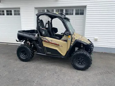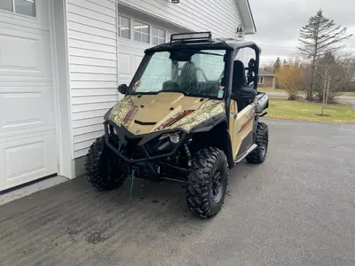 Financing Available. Power Steering. Full Cab except for upper doors including glass windshield with electric wiper and washer, roof, hard rear window, stock doors, Yamaha side mirrors, LED light bar, front and rear bumpers, winch, like new rubber, aluminum rock sliders, gas shocks, dump box, blacked out wheels. Super clean bike with only 1100 miles. $15,900.00