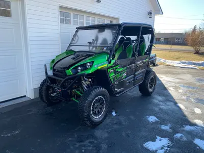 Financing available, only 700 miles, Power Steering, full roof, half windshield that opens, 1/2 doors with upper extensions, full rear window, 1/2 doors with upper extensions, rear view mirror, winch, BFGoodrich 29" Mud Terrain T/As, Fox Gas Shocks, Real nice bike with super low mile!