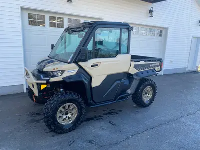 Financing Available! Power Steering, full cab model, heat and a/c, 2 speaker roof stereo, large can am side mirrors plus rear view mirror, glass front windshield that opens with wiper & washer, wench, power windows, turn signals, can-am rock fender flairs, can-am rock sliders, 14" alloy wheels with 30" Track Force tires, dump box. Only 2,900 miles! HAS extended warranty until Dec 2029.