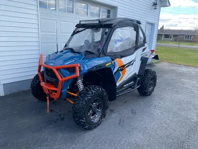 Financing Available! 60" wide model, Power Steering. Full cab including: roof, Windshield with wiper, rear hard window, hard doors with upper enclosures, Polaris front bumper, Polaris rear bumper, Polaris rock sliders, wench, extended fender flairs front & rear. This model comes with Ride Command including: Large Screen display, Bluetooth Stereo, GPS, backup camera, Front window fan defrost, rear view mirror, door side bag storage. Real nice bike. 1553 miles