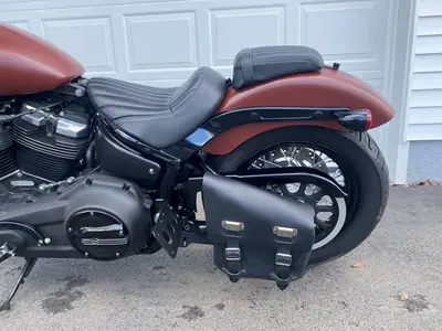 Financing Available! 107ci Milwaukee engine. mid size handle bars with custom HD grips and levers. Bike is all blacked out. Vance & Hines blacked out short shot pipes with breather kit & fuel download. Quick detach windshield. Side mount license plate, custom HD derby cover, HD side mount. Leather saddle bag. Added rear passenger seat. Integrated brake lights and signal lights. HD oil temperature cover. HD halogen light. Also included rear sissy bar. Real nice bike with only 9,000 kms! One owner — lady driven!
